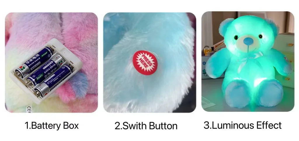 Colorful Glowing Bear Plush Toy Luminous Creative Light Up LED Teddy Bear Xmas Gift Kids Birthday Gift